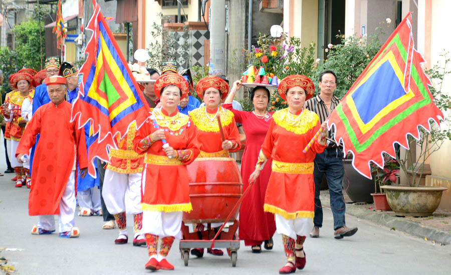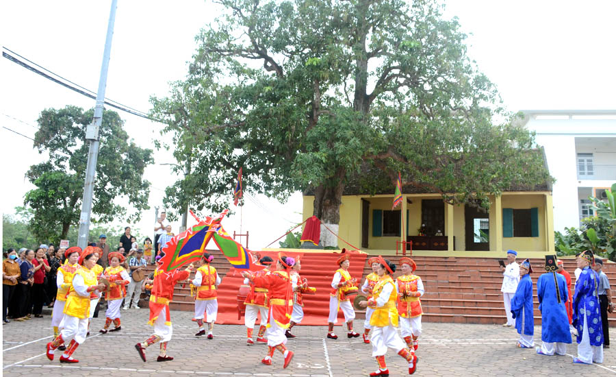 Trước giờ khai mạc, nhân dân thôn Đổng Viên tổ chức lễ hội dưới gốc Cây Di sản