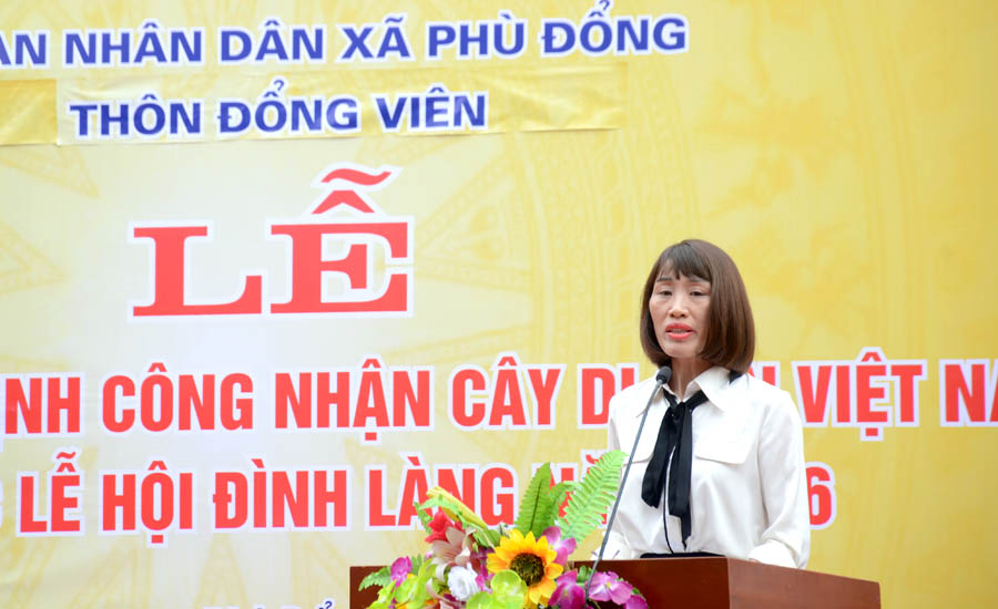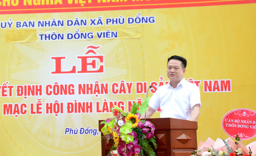 Ông Nguyễn Đình Quang, Phó Chủ tịch UBND xã Phù Đổng, phát biểu chào mừng tại buổi lễ