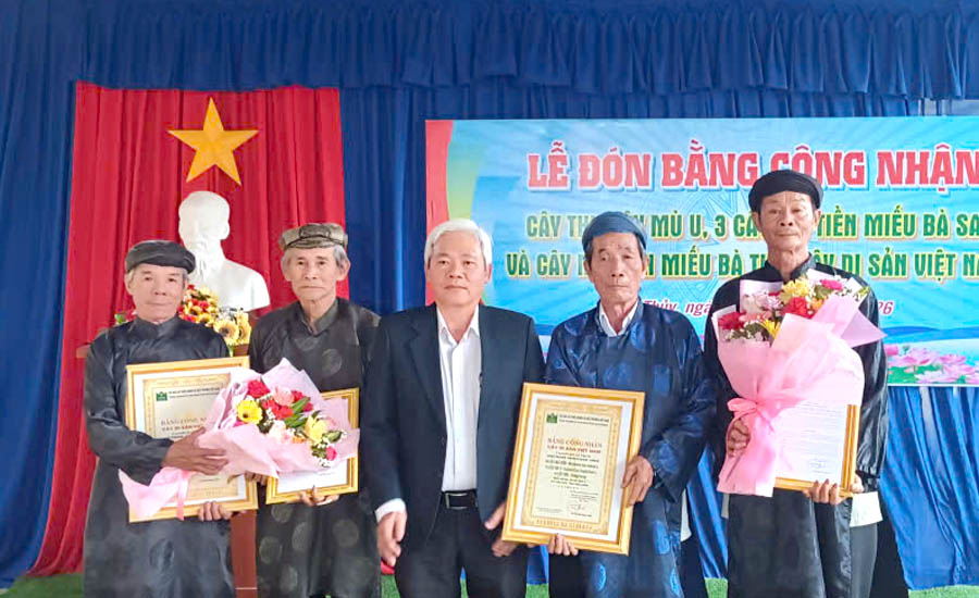 Tại buổi lễ, GS.TS. Nguyễn Văn Công đã thay mặt lãnh đạo VACNE công bố quyết định và trao Bằng công nhận Cây Di sản Việt Nam cho đại diện chính quyền và nhân dân địa phương.