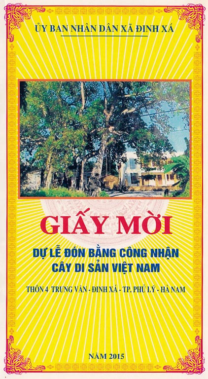 (VACNE) - Ngày 20/9/2015, UBND xã Đinh Xá, TP. Phủ Lý tổ chức Lễ đón Bằng Công nhận Cây Di sản Việt Nam Cây Đa tại thôn Trung Văn, xã Đình Xá