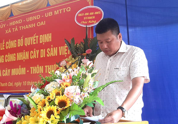 Ông Phùng Quanh Chính, Phó chủ tịch Hội đồng Cây Di sản Việt Nam trao Bằng Công nhận