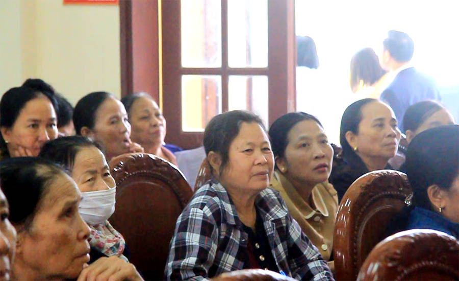 Phụ nữ và nông dân trong xã Khánh Trung (Ninh Bình) tham dự một lớp tập huấn về môi trường