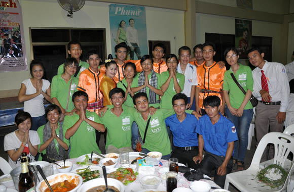 Chụp ảnh giao lưu với các tình nguyện viên Lào