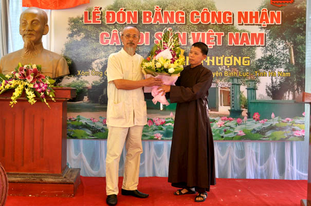 Các ông, bà: Ngô Thị Mai Thanh, Ủy viên Thường vụ huyện Ủy, Chủ tịch Ủy ban MTTQ huyện Bình Lục, cùng các vị chức sắc Chùa La Hào, các vị lãnh đạo xã La Sơn và một số doanh nghiệp địa phương đã đến tặng hoa chúc mừng.