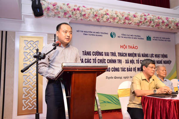 (VACNE) - Ngày 24/10/2017, tại TP. Tuyên Quang, Hội Bảo vệ Thiên nhiên và Môi trường Việt Nam phối hợp với Tổng cục Môi trường và Sở Tài nguyên và Môi trường tỉnh Tuyên Quang tổ chức Hội thảo “Tăng cường sự tham gia của các tổ chức chính trị - xã hội vào công tác bảo vệ môi trường”.