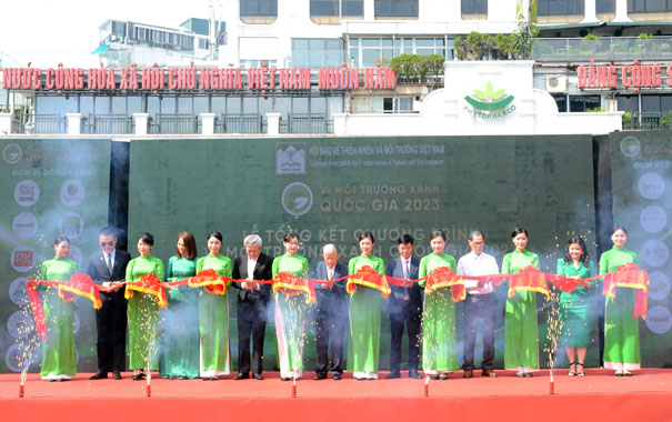 Cũng tại buổi Lễ, lãnh đạo Hội Bảo vệ Thiên nhiên và Môi trường Việt Nam và các vị khách mời đã cùng chung tay cắt băng khai mạc Chương trình “Vì Môi trường xanh Quốc gia 2024”