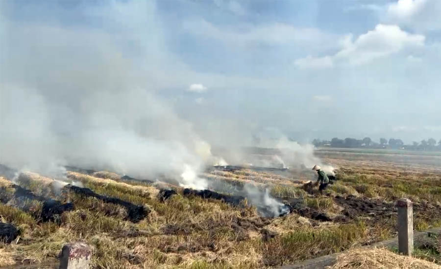 Sau mỗi mùa gặt, nông dân vẫn thường đốt rơm rạ để làm sạch ruộng nhanh
