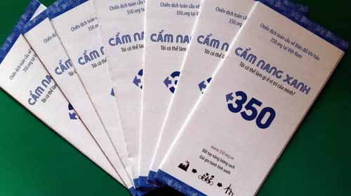 Nhóm điều phối Chiến dịch toàn cầu về biến đổi khí hậu 350.org tại VN vừa ra mắt “Cẩm nang xanh - Tôi có thể làm gì ở vị trí của mình?” (ảnh), in 35.000 bản trên giấy tái chế với sự tài trợ của Công ty cổ phần Giấy Sài Gòn.