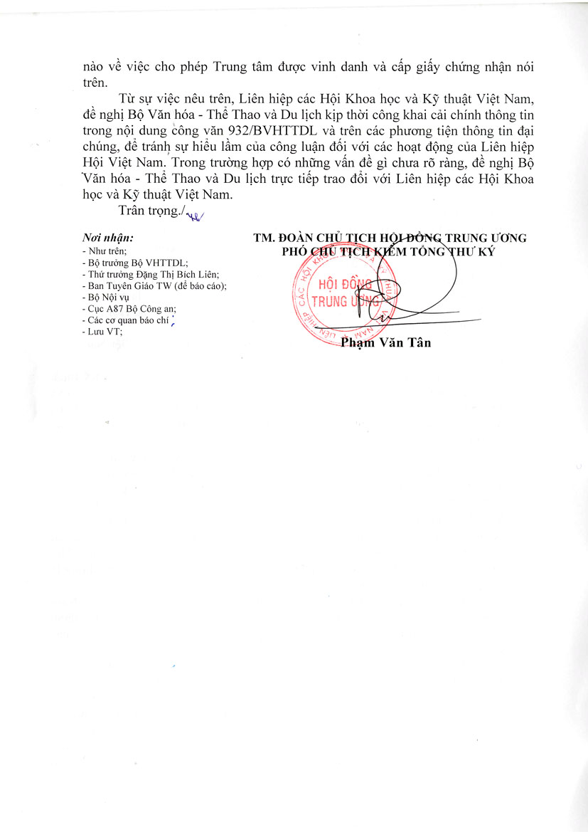 Bài số 2: Đề nghị cải chính công văn 932/BVHTTDL, ngày 10/3/2017 của Bộ Văn hóa Thể thao và Du lịch