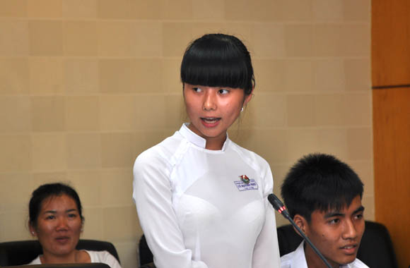 Đại diện thí sinh đoạt giải phát biểu tại buổi lễ