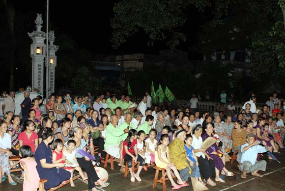 Mặc dù trời mưa to từ chiều, gần 8 h tối mới tạm ngớt, nhưng dân làng vẫn ra đình rất đông, chật hết cả sân đình để tham dự đêm văn nghệ. Rất nhiều tiết mục được dàn dựng công phu, rất chuyên nghiệp, cùng giọng hát nghọt ngào của các "ca sỹ" Đoàn Hành trình đã làm cho không khí sân đình hết sức sôi động.