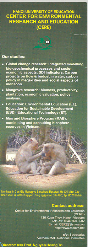 Giới thiệu vắn tắt về Trung tâm Nghiên cứu và Giáo dục Môi trường (CERE), Đại học sư phạm Hà Nội